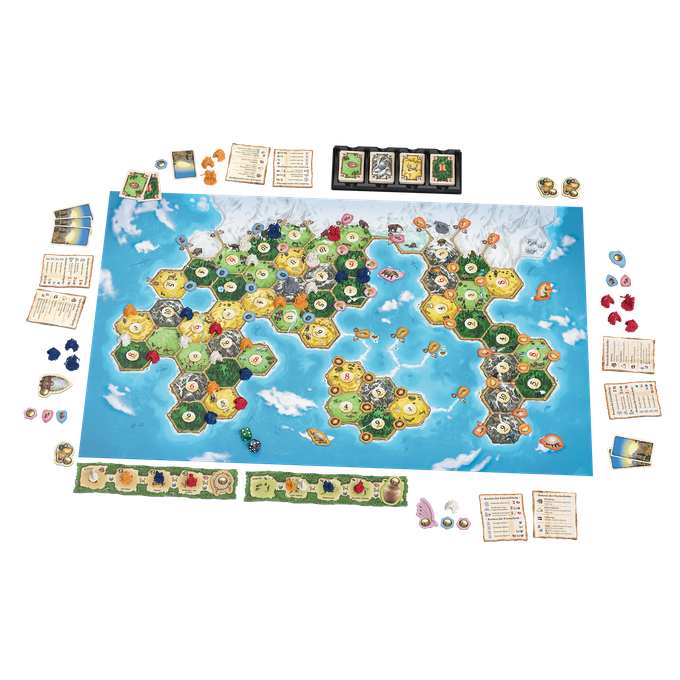 Catan:Opmars van de Mensheid is een vernieuwde versie van Kolonisten van de Prehistorie.De nieuwe editie is voorzien van nieuwe, gedetailleerde speelfiguren en prachtig artwork.