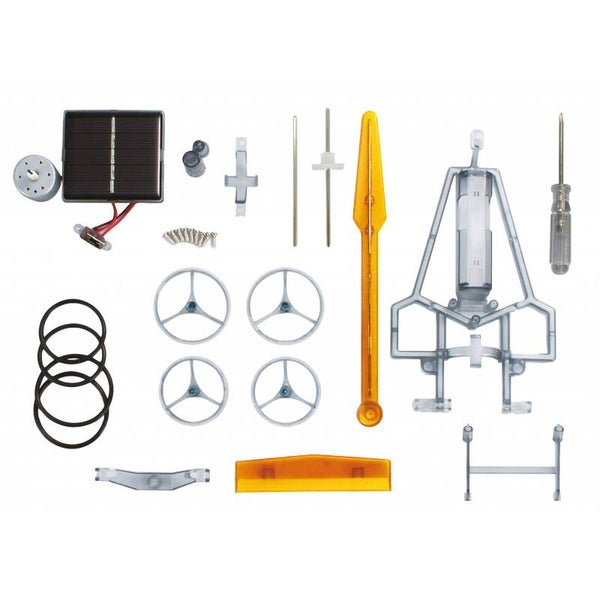 Zet de onderdelen van de auto in elkaar met de schroevendraaier en laat de auto vervolgens rijden met behulp van zonne-energie.