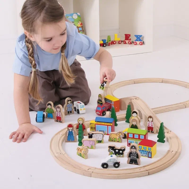 De houten treinbaan van BigJigsToys is universeel en kan gecombineert worden met elk ander merk.- geschikt voor kinderen vanaf 3 jaar- afmetingen: 3 x 7 x 1,5 cm- artikelnummer: BJT054