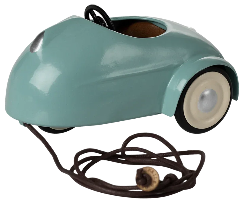 De metalen auto is een uitstekend vervoermiddel voor alle muizen. Het past op alle muizen in de maten kleine broer/zus, grote broer/zus en mama/papa. Het meegeleverde touwtje kan onder de auto worden vastgemaakt zodat het kind de auto kan trekken.