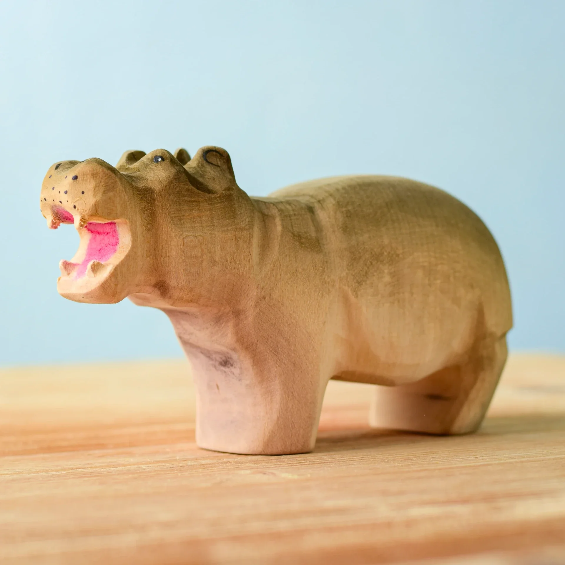 Elk nijlpaard is gesneden uit hoogwaardig, duurzaam hout en afgewerkt met niet-giftige, op water gebaseerde verfstoffen, waardoor het veilig is voor kinderen vanaf 3 jaar.