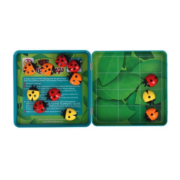 Logibugs - Denkspel. Zet de lieveheersbeestjes op hun plaats! Kies een uitdaging en probeer de puzzel op te lossen. 48 uitdagingen in oplopende moeilijkheid. Geschikt voor 1 speler.