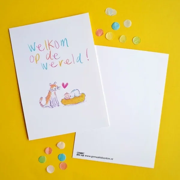 Afmeting van de kaart is 10× 15 cm. Geprint op BioTop papier. BioTop is gemaakt van afvalhout en is chloorvrij gebleekt.