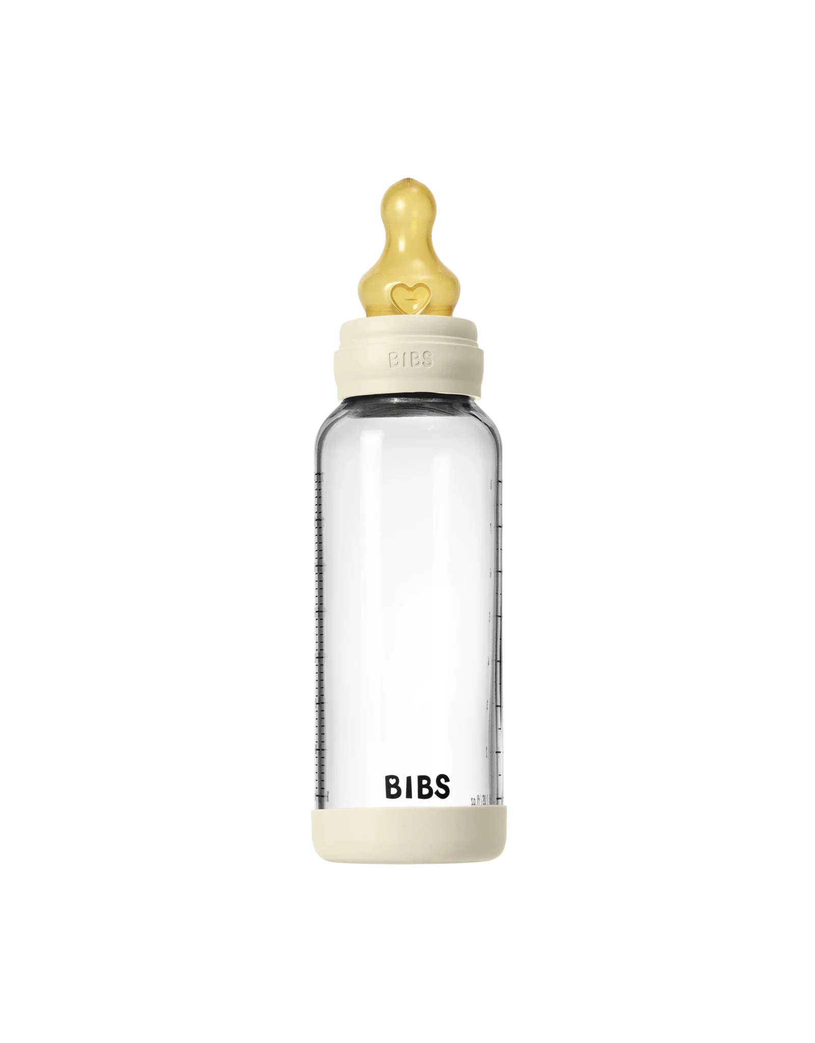 BIBS - Glazen Babyfles - Rond Latex - 240 ml Medium Flow - Ivory