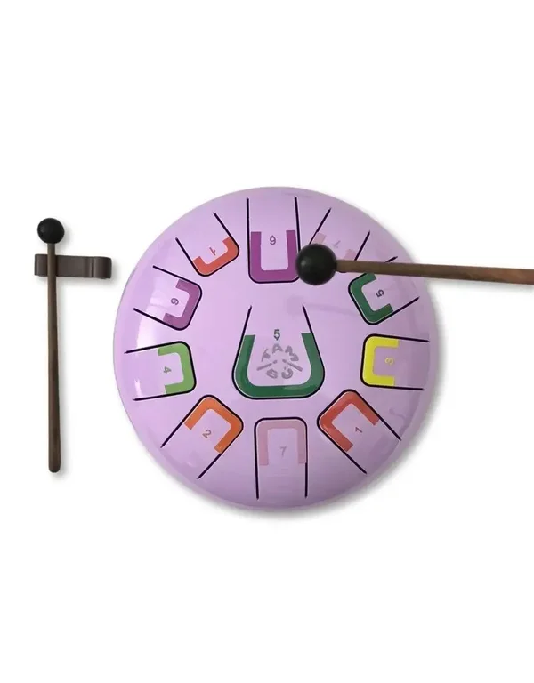 De Steel Tongue Drum is een waardevol muziekinstrument dat je laat kennismaken met de fascinerende wereld van percussie. Deze tongdrum is een soort trommel op verschillende manieren te bespelen. TAMBÚ produceert een verscheidenheid aan tonen die harmonieus op elkaar zijn afgestemd om een langdurig, rustgevend geluid te creëren. Hierdoor ontstaat een omhullende en uiterst ontspannen sfeer. Met de 11 tonen kun je geavanceerde partituren reproduceren en componeren. Elke noot is gemarkeerd met een kleur en een nummer.