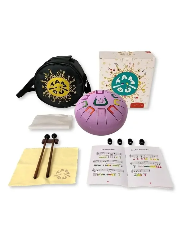 De lila TAMBU is een betoverend muzikaal speeltje dat de perfecte introductie biedt tot de fascinerende wereld van percussie. Het fluweelzachte geluid maakt de tongdrum dus ook geschikt voor meditatie- en ontspanningsworkshops
