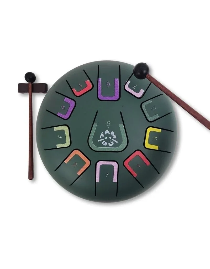 De Steel Tongue Drum is een waardevol muziekinstrument dat je laat kennismaken met de fascinerende wereld van percussie. Deze tongdrum is een soort trommel op verschillende manieren te bespelen. TAMBÚ produceert een verscheidenheid aan tonen die harmonieus op elkaar zijn afgestemd om een langdurig, rustgevend geluid te creëren. Hierdoor ontstaat een omhullende en uiterst ontspannen sfeer. Met de 11 tonen kun je geavanceerde partituren reproduceren en componeren. Elke noot is gemarkeerd met een kleur en een nummer.