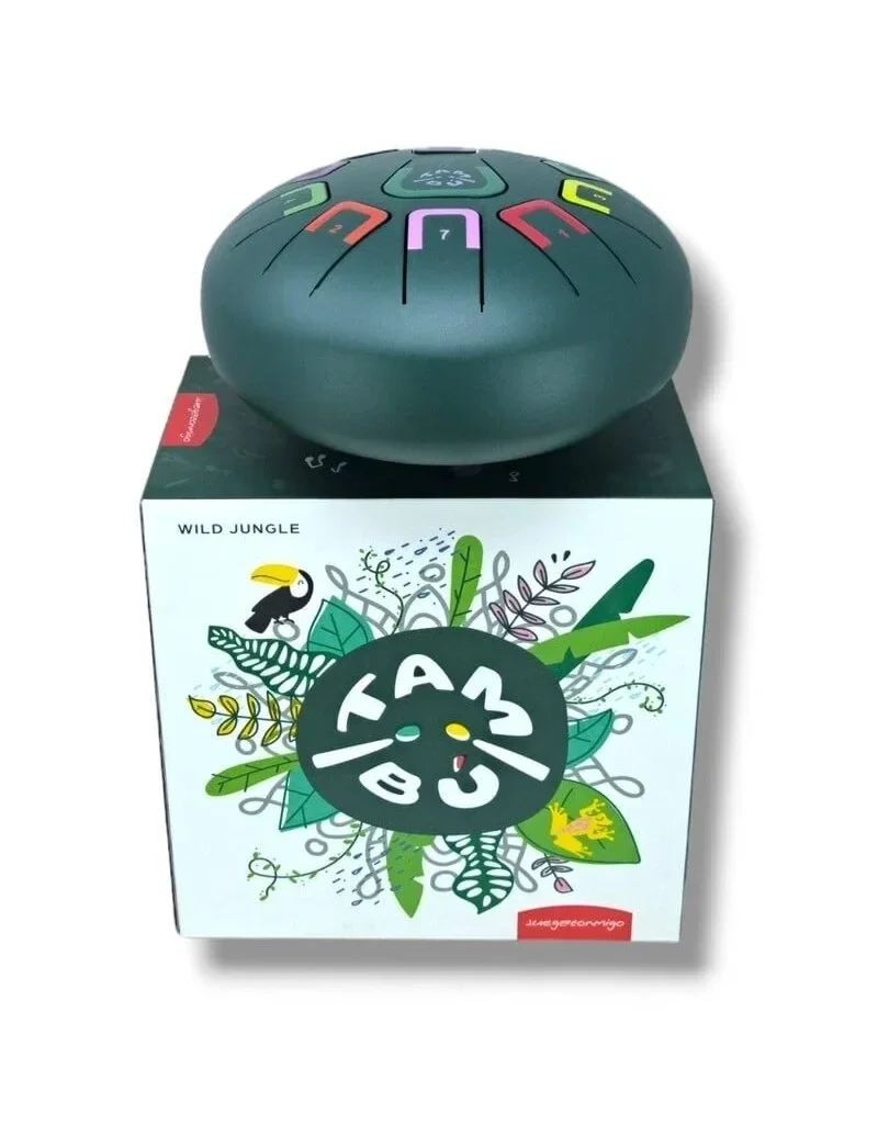 De matgroene TAMBU is een betoverend muzikaal speeltje dat de perfecte introductie biedt tot de fascinerende wereld van percussie. Het fluweelzachte geluid maakt de tongdrum dus ook geschikt voor meditatie- en ontspanningsworkshops.