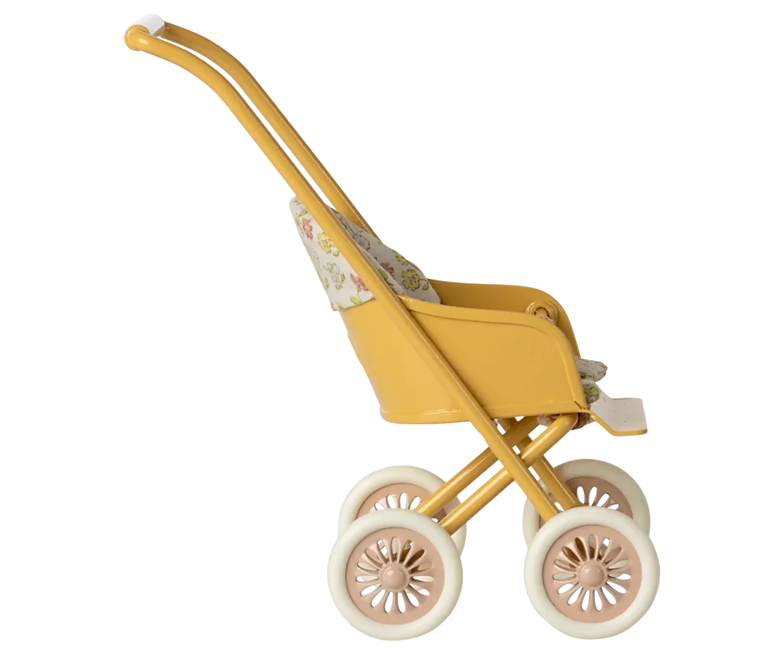 Maileg - Metalen kinderwagen, Buggy, Stroller, Baby mice - Yellow
