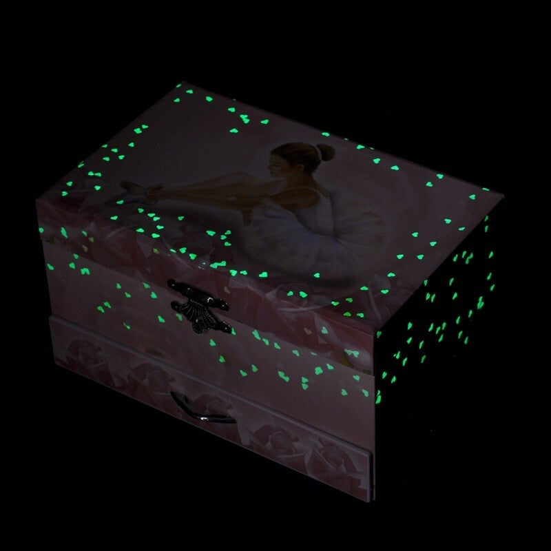 Leuk sieradendoosje in het thema van een dansende ballerina. Wind het muziekdoosje op en de ballerina danst in de rondte.