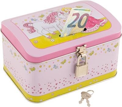 De metalen doos met hangslot is een veilige plek om de verzamelde schatten in op te bergen.
