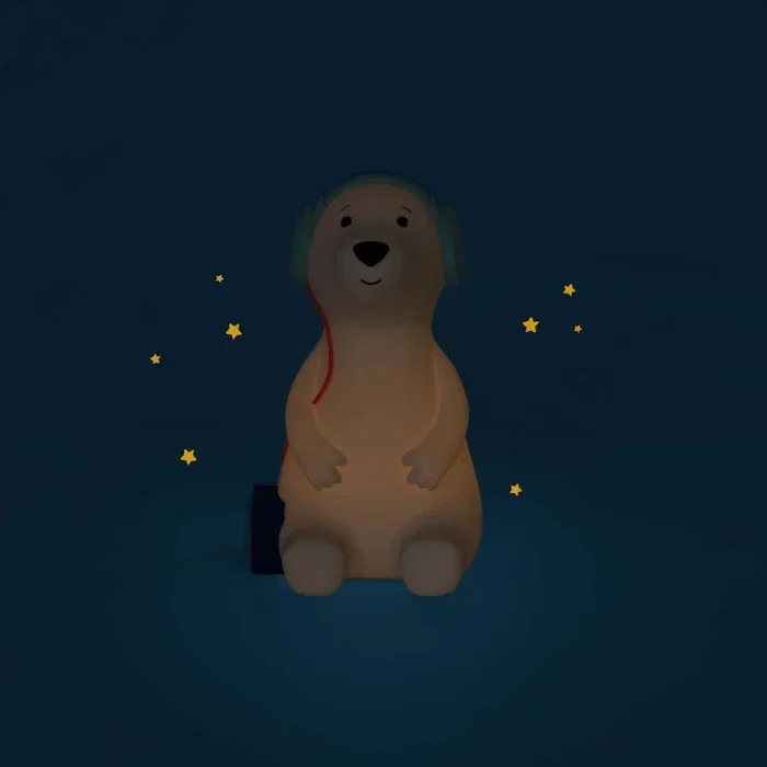 BPA-vrij siliconen nachtlampje in de vorm van een hond met dimmer (3 standen). Verspreidt een rustgevend licht in de babykamer na zonsondergang en is overdag een mooie decoratie! Verwijderbare LED-module. Inclusief USB-C-kabel.