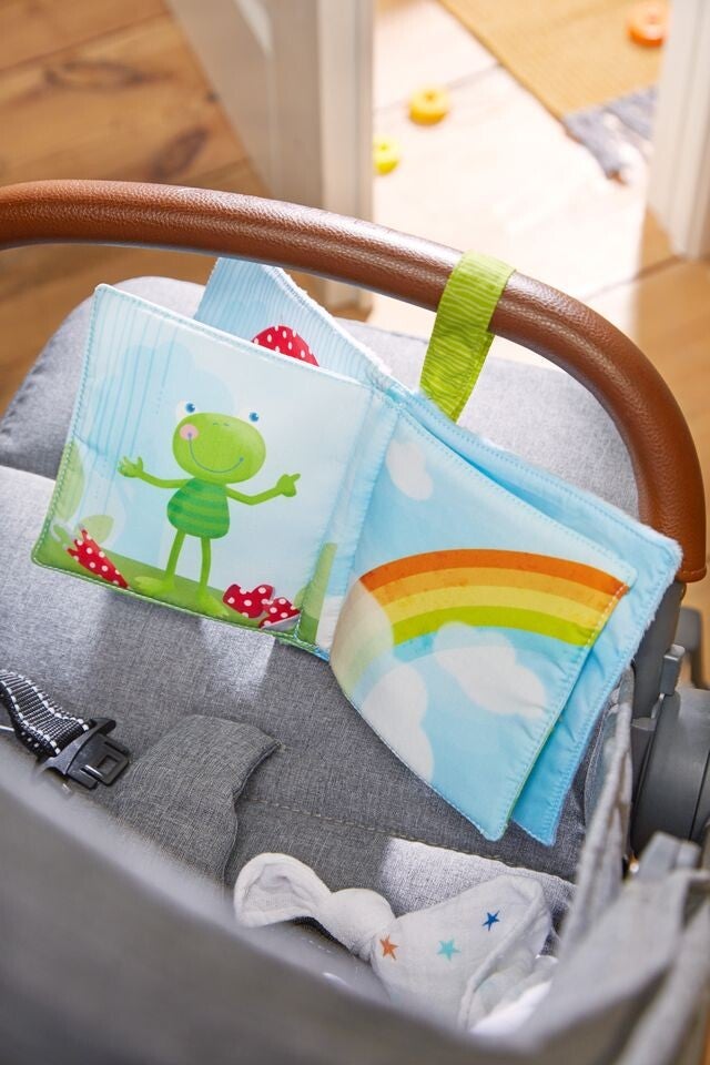 Hier schijnen de zon en de regenboog helder! Net zo divers als de kleuren van het HABA Regenboogwereld knuffelboek zijn de verrassingen die het bevat. Op elke pagina is er iets spannends te ontdekken voor kinderen vanaf 6 maanden: de wolk betovert met zijn fascinerende knisperende folie en de zon piept vrolijk als je erop drukt. Kleine handjes zullen zich prima vermaken en het HABA Regenboogwereld knuffelboek voelt bovendien heerlijk zacht aan. Dankzij de klittenbandsluiting kan het gemakkelijk aan kinderwagens en autostoeltjes worden bevestigd, zodat er onderweg altijd een vrolijke sfeer heerst.