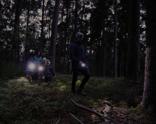 Nachtwandelingen zijn passé. Tegenwoordig creëer je je eigen mini-avontuur. Met onze weerbestendige "Light up the night" zaklamp, inclusief vier vellen reflectorstickers, creëer je je eigen lichtgevende pad door de duisternis en laat je ogen en pijlen oplichten. Licht uit, moed aan! Waar je ook bent – in het bos 's nachts, in de kelder of tijdens het kamperen – deze set tovert de duisternis om in een gloeiende avonturenspeeltuin. Pak je zaklamp, markeer het pad en ga op schattenjacht met de kinderen. Ben je klaar voor avontuur? Maak van de nacht een belevenis!