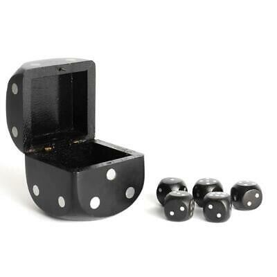 Prachtige houten opbergbox met daarin 5 houten dobbelstenen.
